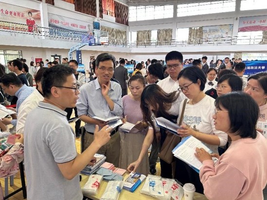 在面对面交流环节,家长和学生咨询我校招生和人才培养政策,了解我校各学院的特色与优势。我校98届校友携孩子咨询招生情况,了解学校发展现状,有关媒体对我校宣讲老师进行了采访。